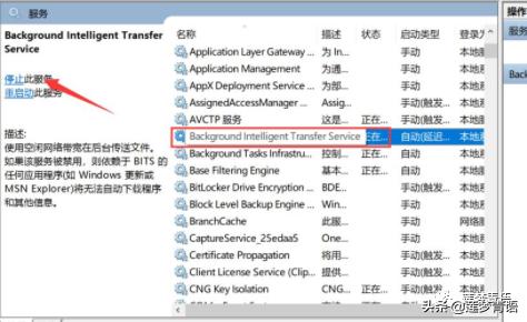 3.在服务中找到【Background Intelligent Transfer Service】然后点击【停止】。