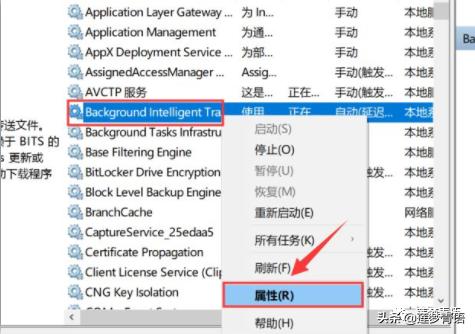 4.鼠标右击【Background Intelligent Transfer Service】,选择【属性】。