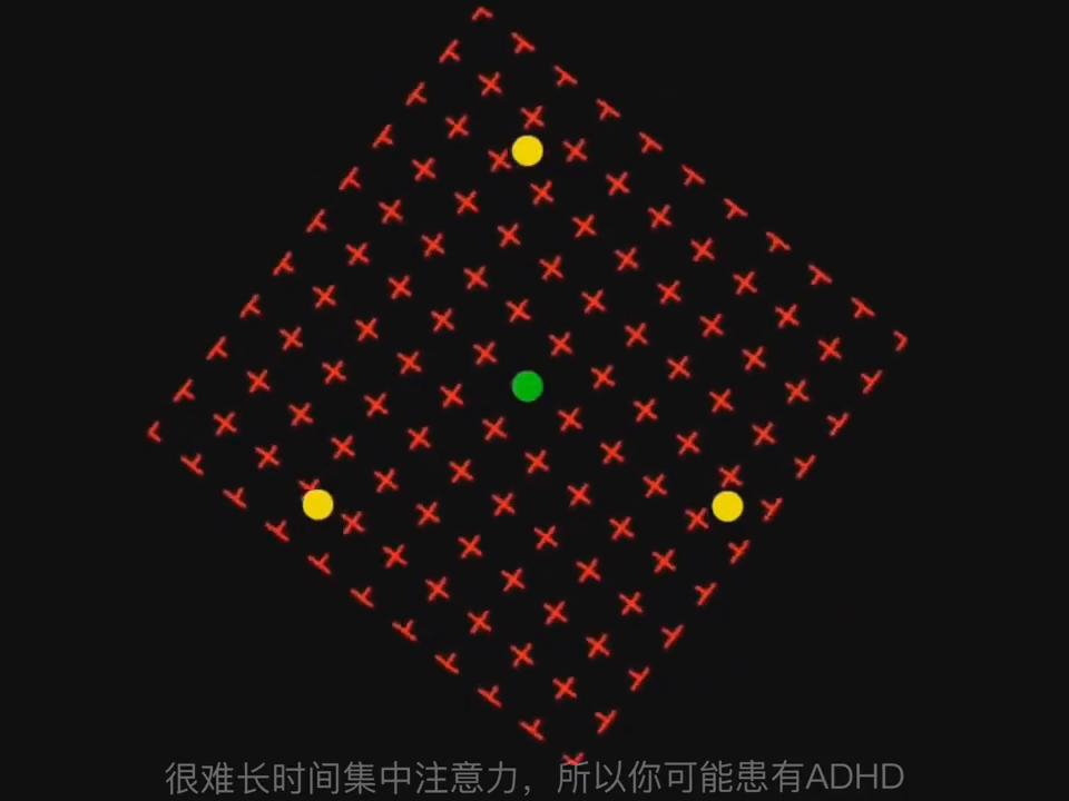 如果你只能让一两个小点消失,那么你可能很容易分心,很难长时间集中注意力,所以你可能患有ADHD。如果你能让它们消失5到10秒,那么你可能有一个正常持续的注意力。顺便说一句,只有不到1%的人能做到,那么你的注意力的持续能力可能非同寻常。